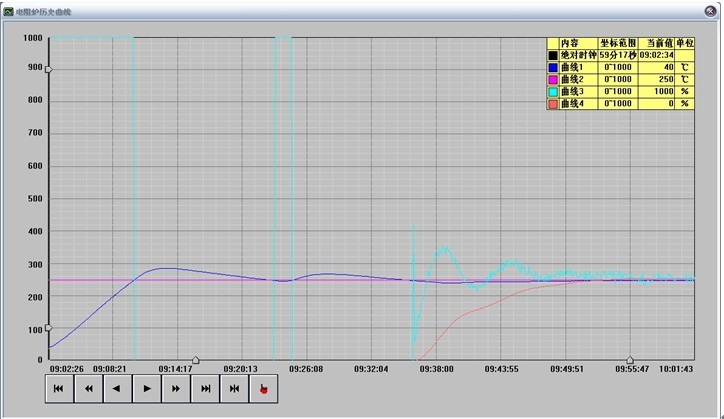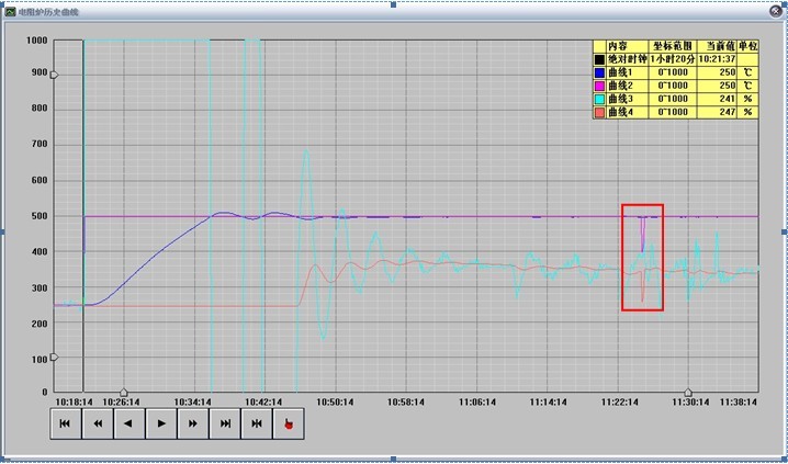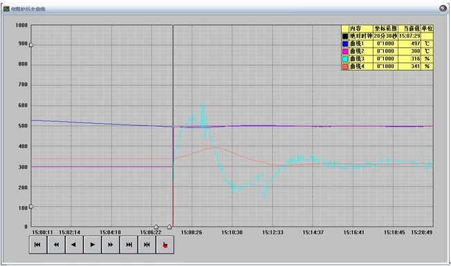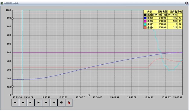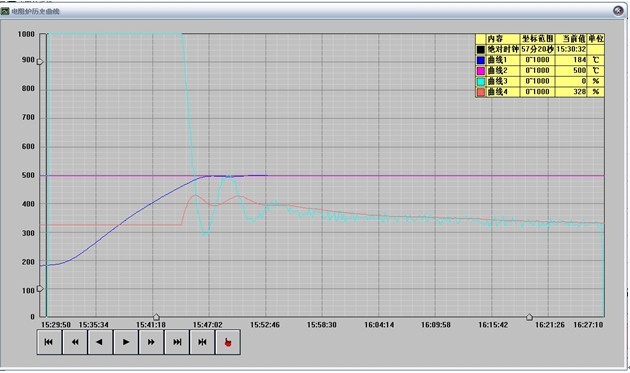 由以上可知:时间程序启动时,各温度段都能由前往后正确跟踪受控。 |