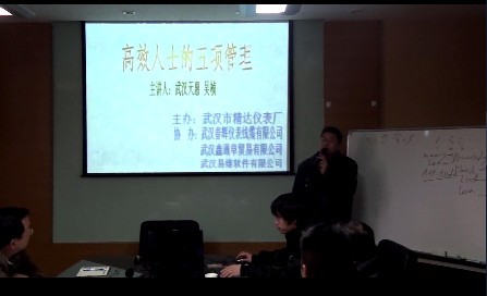2010年12月18日上午10:00时,在武汉精达仪表厂会议室里召开了一场别开生面的“高效人士的五项管理”研讨会。研讨会由武汉春辉仪表线缆有限公司,武汉鑫通阜贸易有限公司,武汉易维软件有限公司协办。来自武汉天惠生物工程有限公司的吴总主讲。
