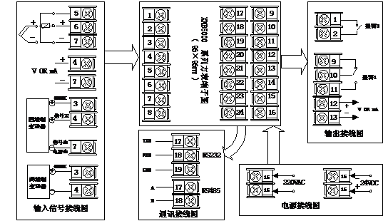 XMB5000系列智能数字显示控制变送仪,带上下限控制报警,4~20mA输入,4~20mA变送输出,显示量程 0-10.00m,160×80mm横表,带24VDC电源输出,带RS232隔离通讯接口
