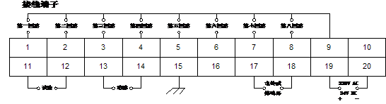 XXS—01型闪光信号报警器,电源电压220V、50HZ,八个回路报警输入,以及继电器接点输出(220V、3A)由接线端子引出可直接连接电铃或蜂鸣器。