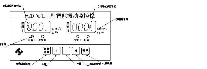 Ⅱ通道显示框:在运行状态下,显示通道Ⅱ位移量;在参数设置状态下,显示参数标志对应的出厂参数值;